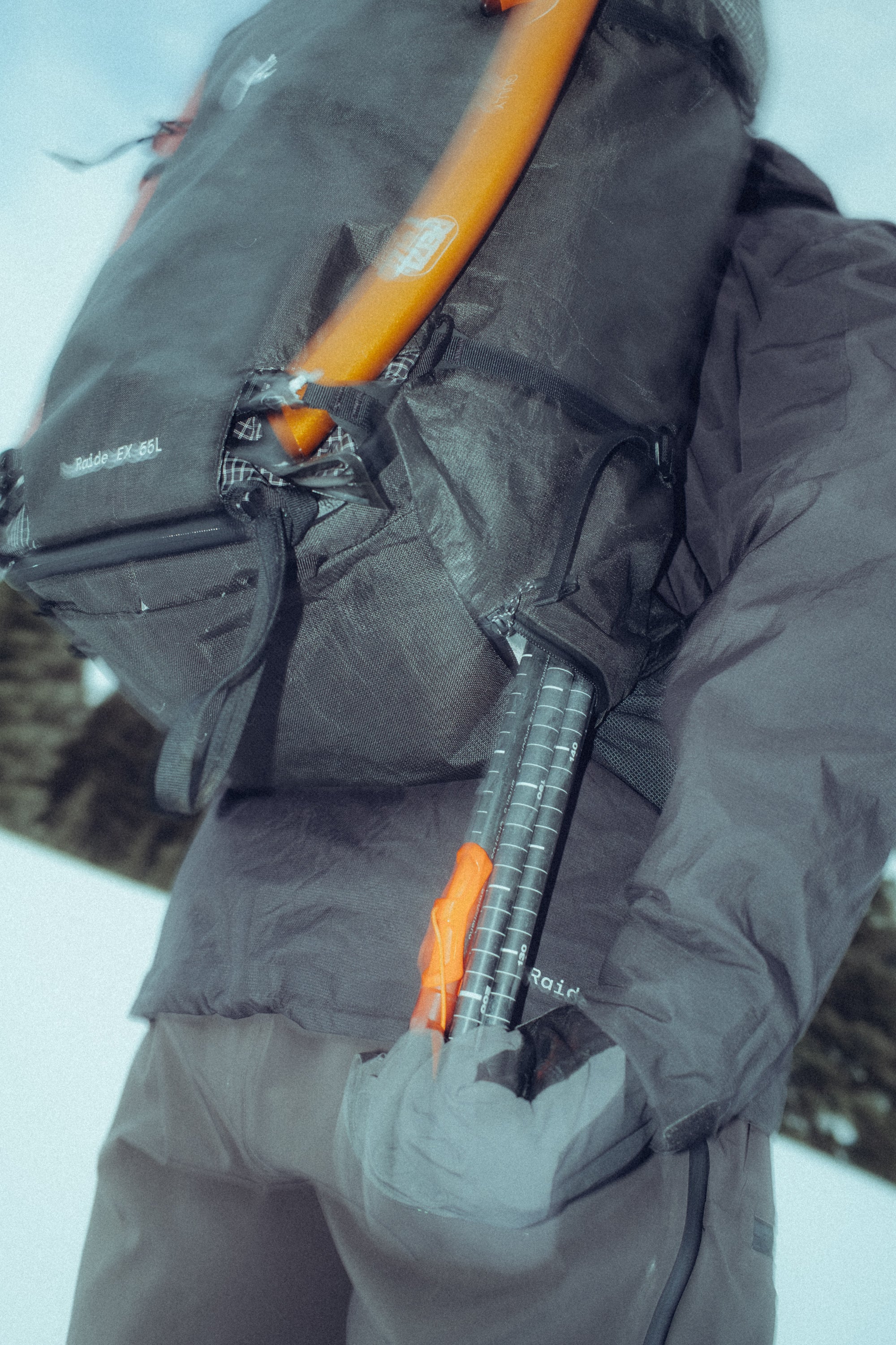 Raide packs prioritize quick access to your avalanche tools, and really quick access to your probe while also improving the space efficiency and bringing the tools closer to your center of mass.