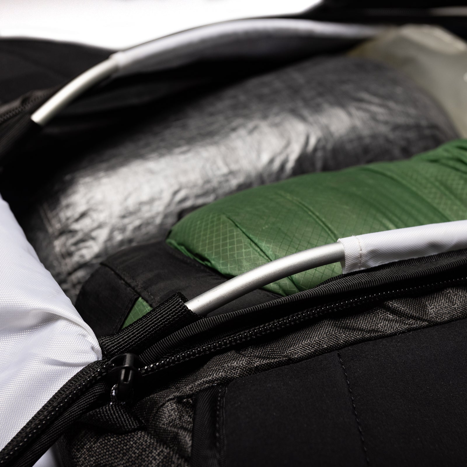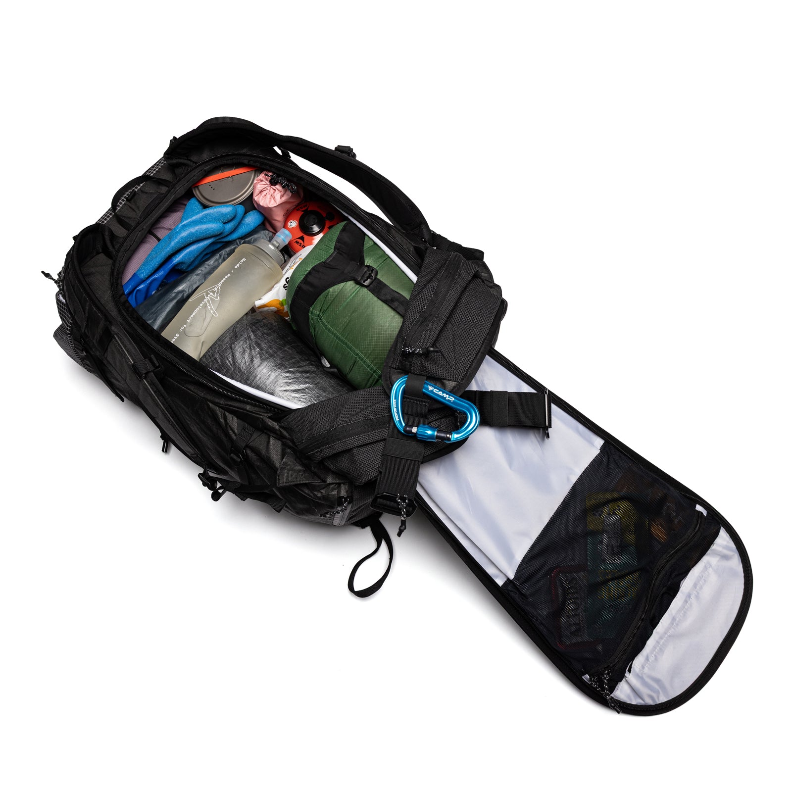 The only way to get access to all of your gear regardless of how you are carrying your skis. We think back panel access is essential to any expedition ski pack built for moving efficiently in the mountains. The frame & backpanel construction work together to create a seamless zipper interface, decreasing the time and effort it takes for you to reach your gear.
