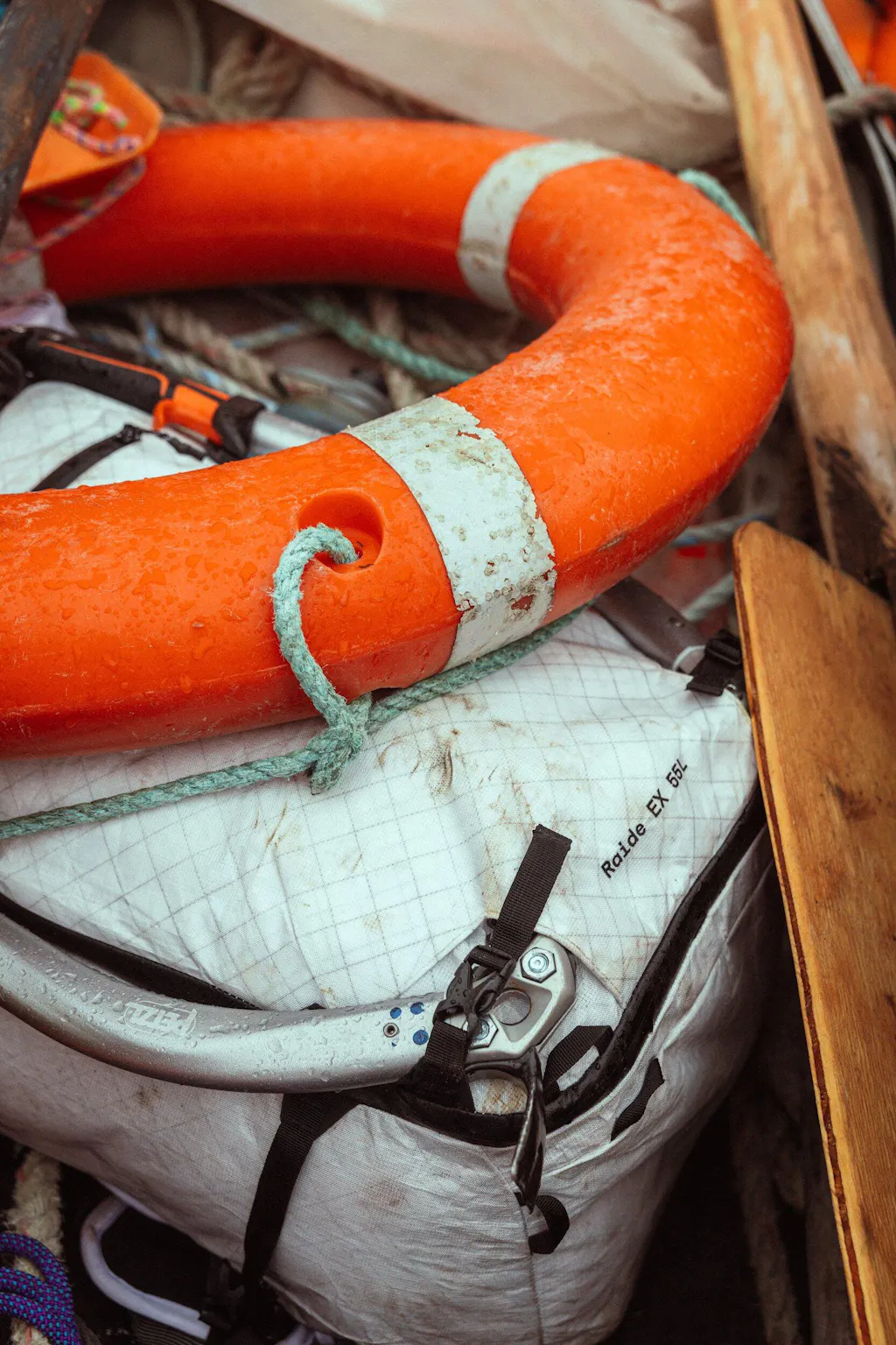 The EX 55L uses fabrics made of UHMWPE (the highest strength to weight ratio yarn on the planet) in different constructions.