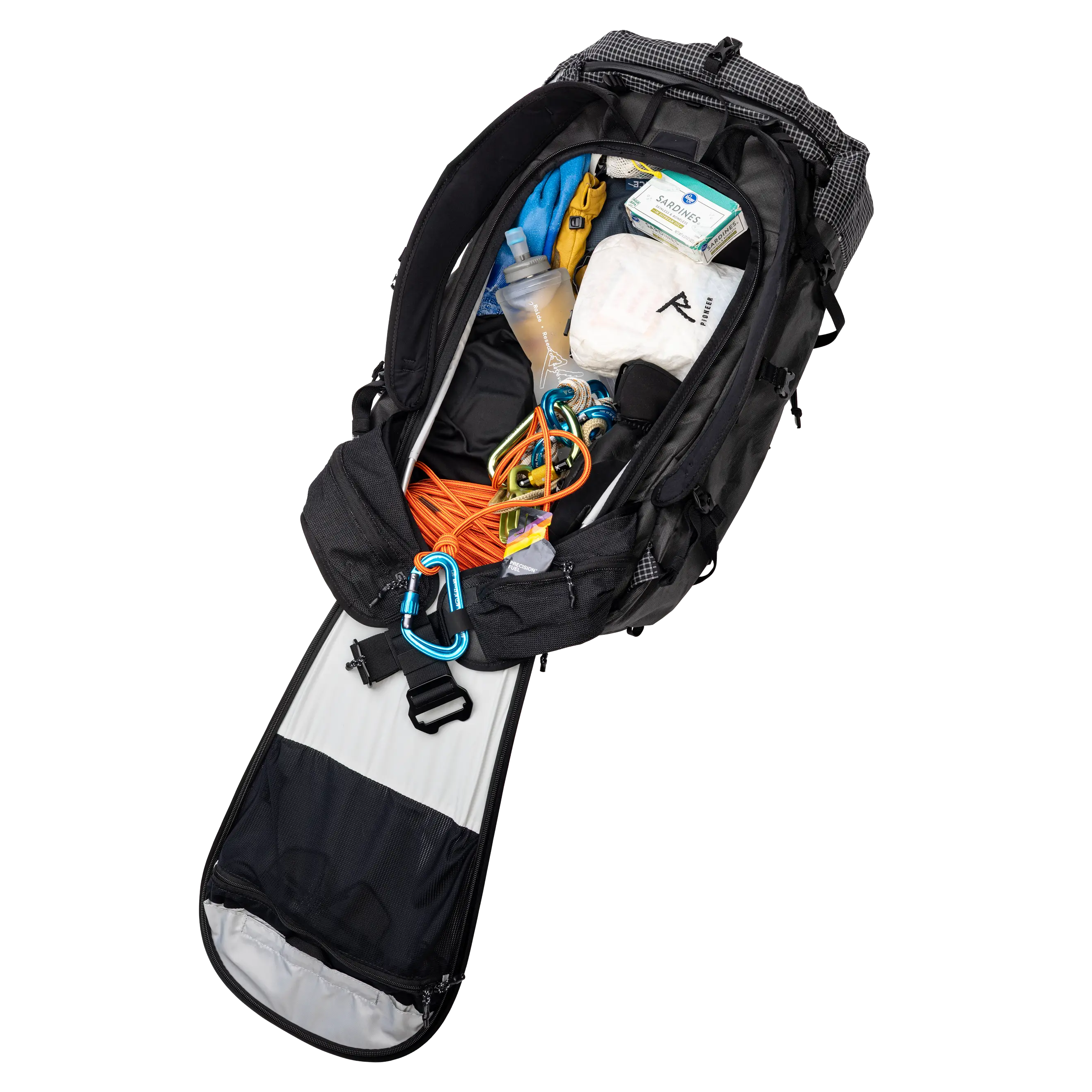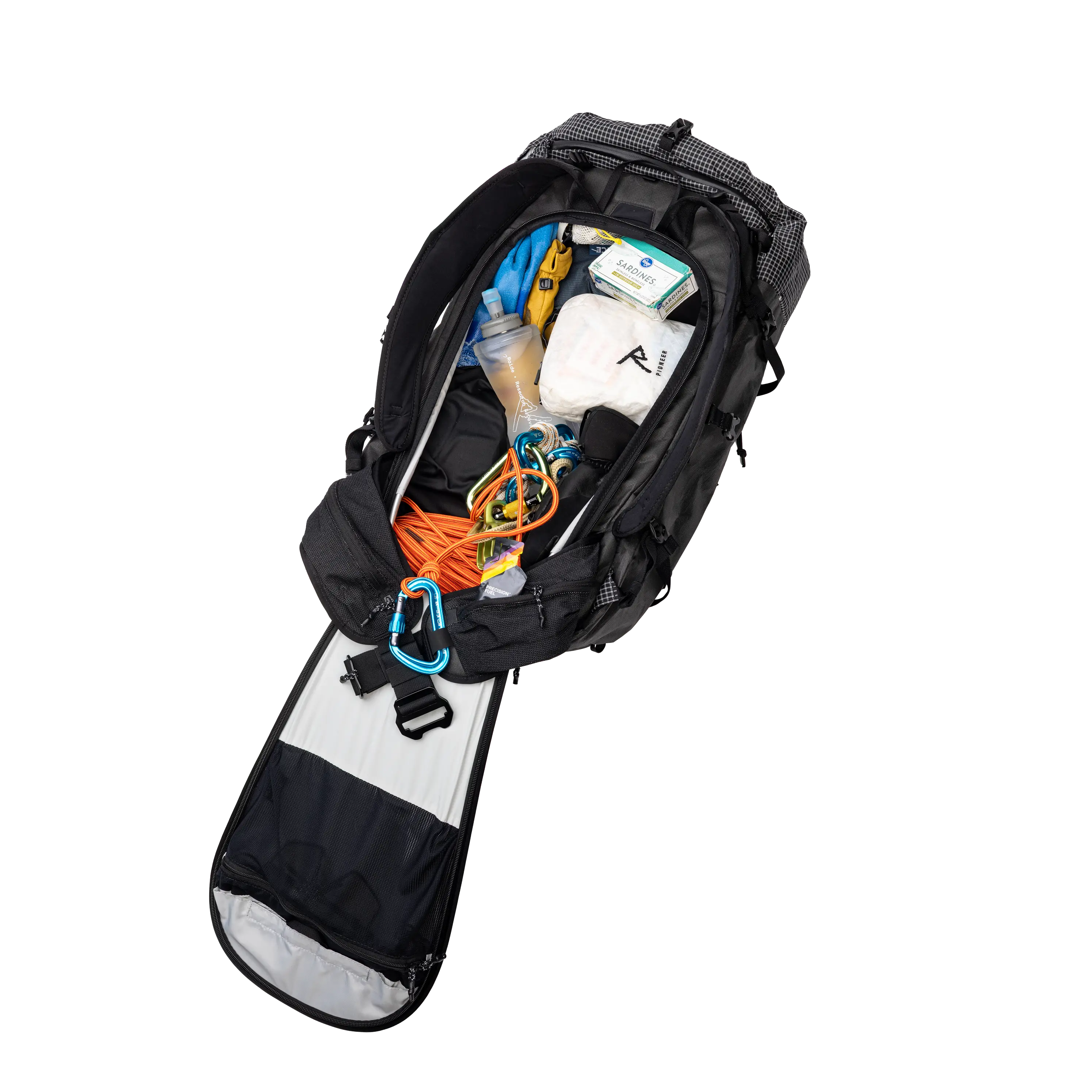 The only way to get access to all of your gear regardless of how you are carrying your skis. We think back panel access is essential to any backcountry ski pack built for moving efficiently in the mountains.