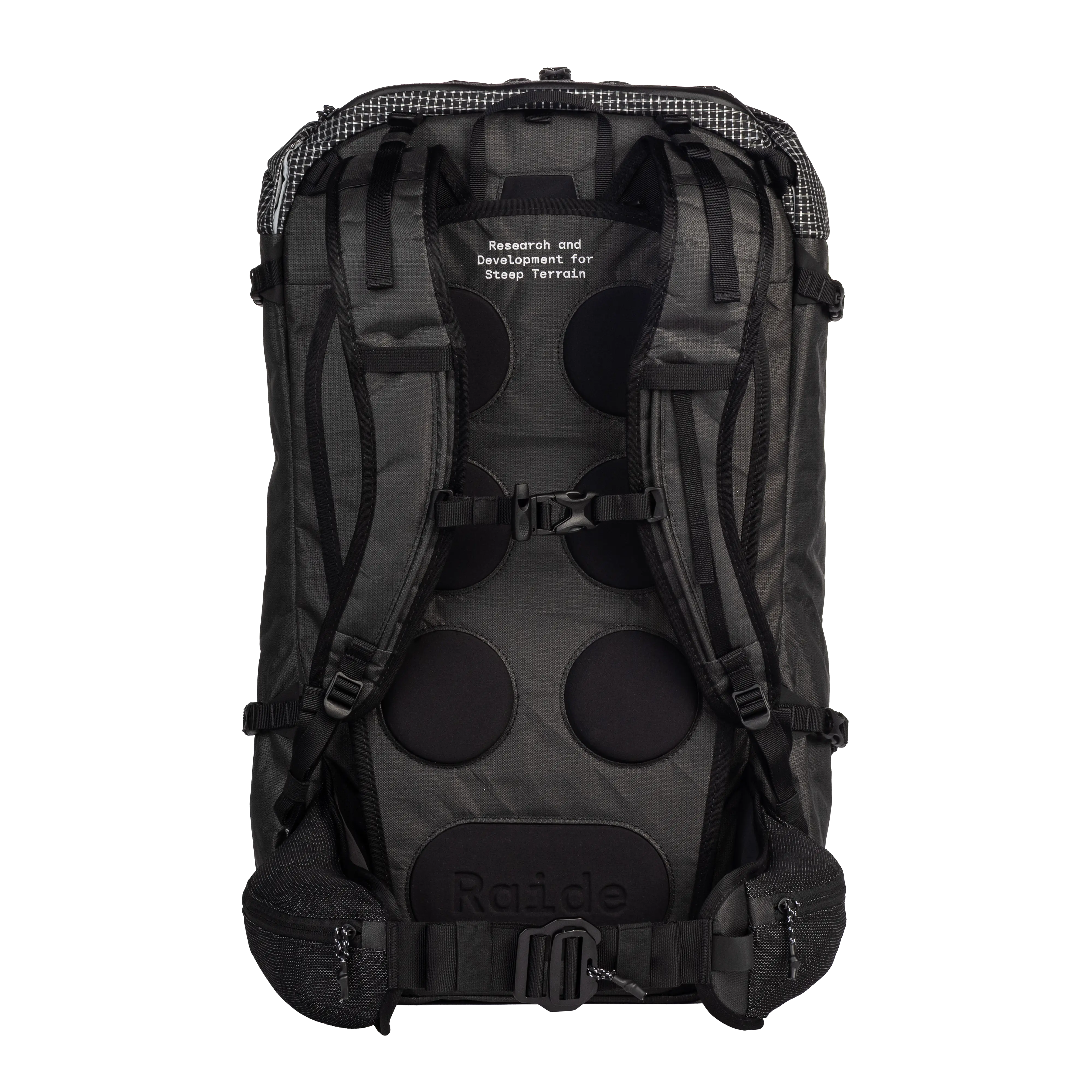 Raide packs prioritize quick access to your avalanche tools, and really quick access to your probe while also improving the space efficiency and bringing the tools closer to your center of mass.