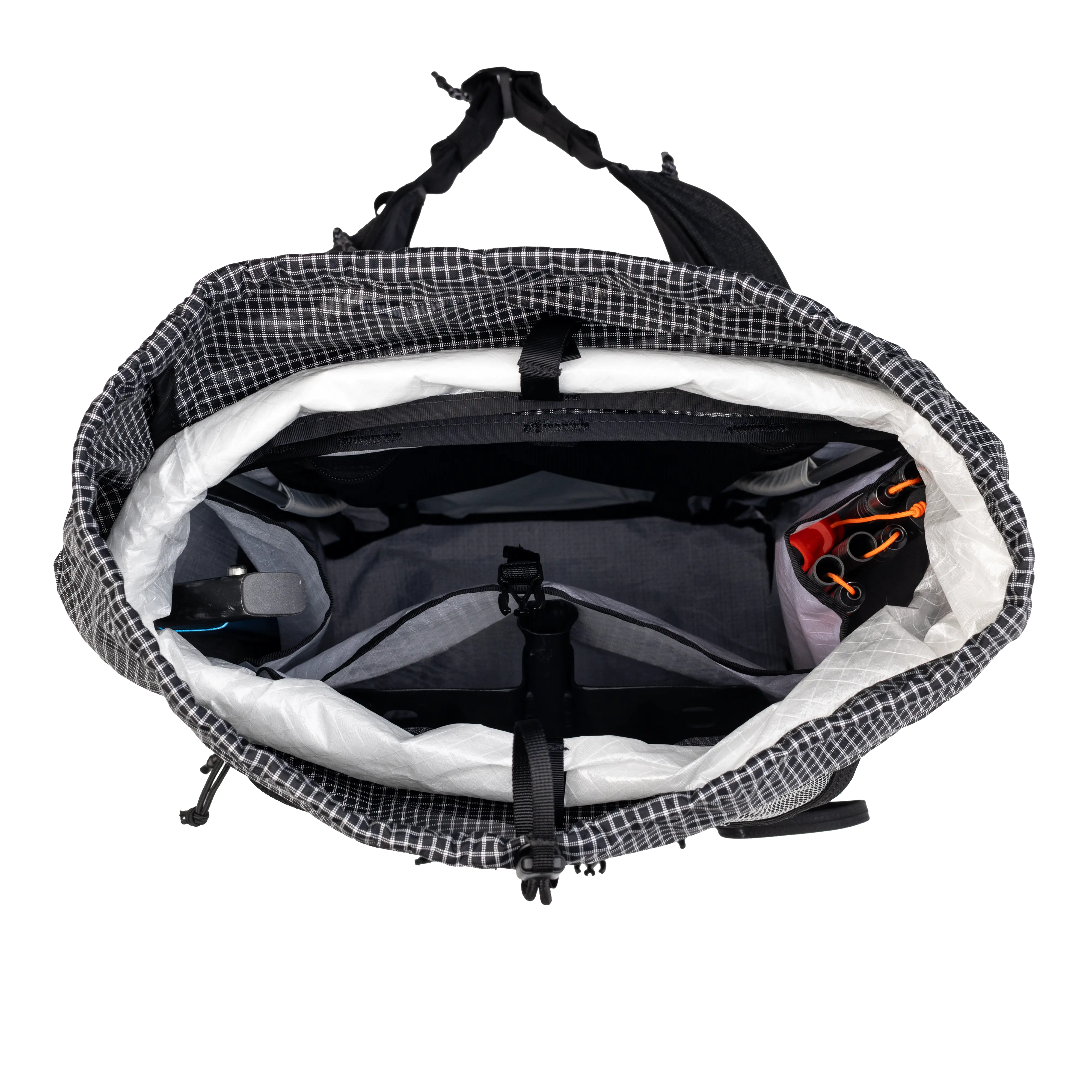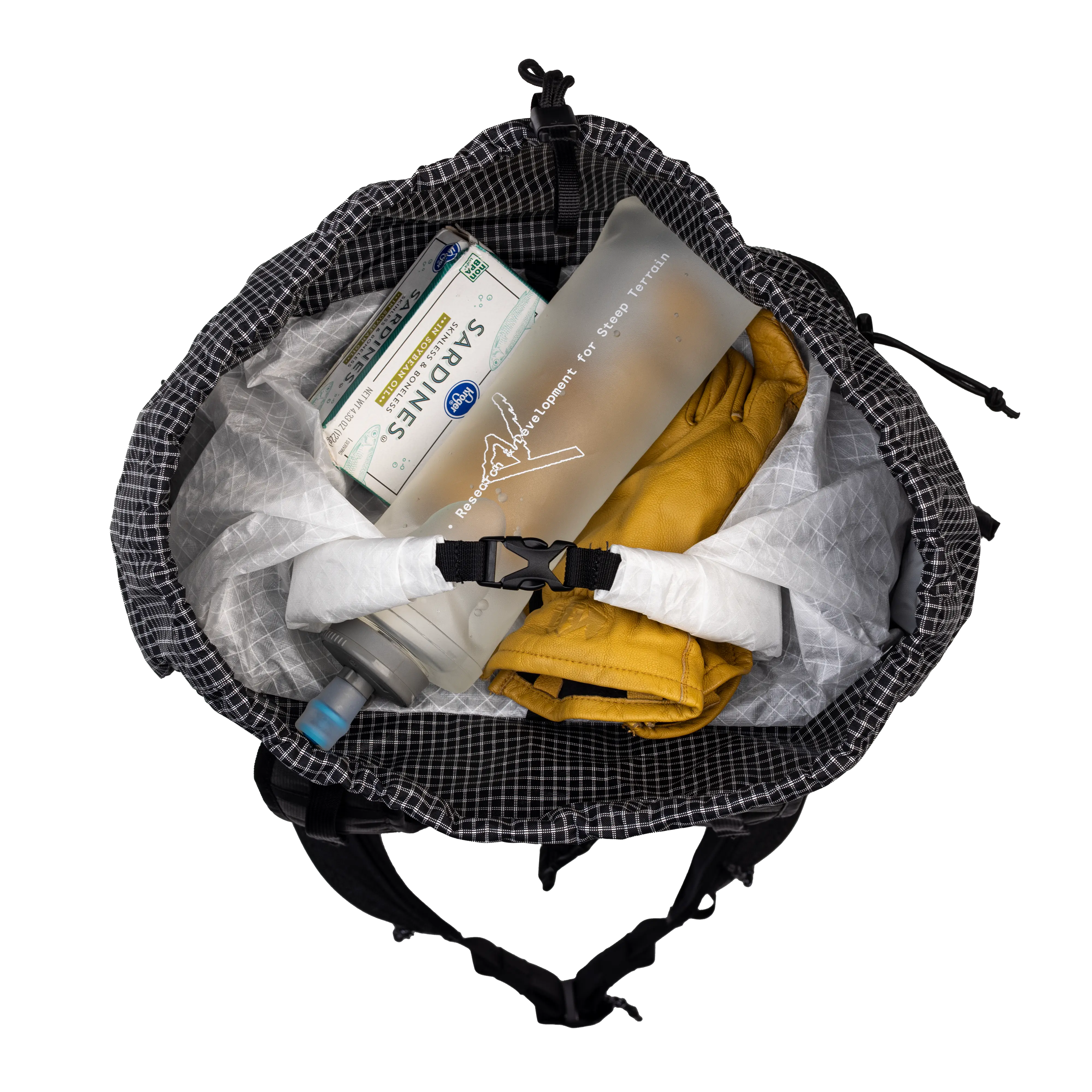 A waterproof rolltop allows you to extend your pack capacity to 55L, or use the cinch top with the rolltop below to create a protected pocket for wet goods, or stow the rolltop away for fastest pack access from the top.