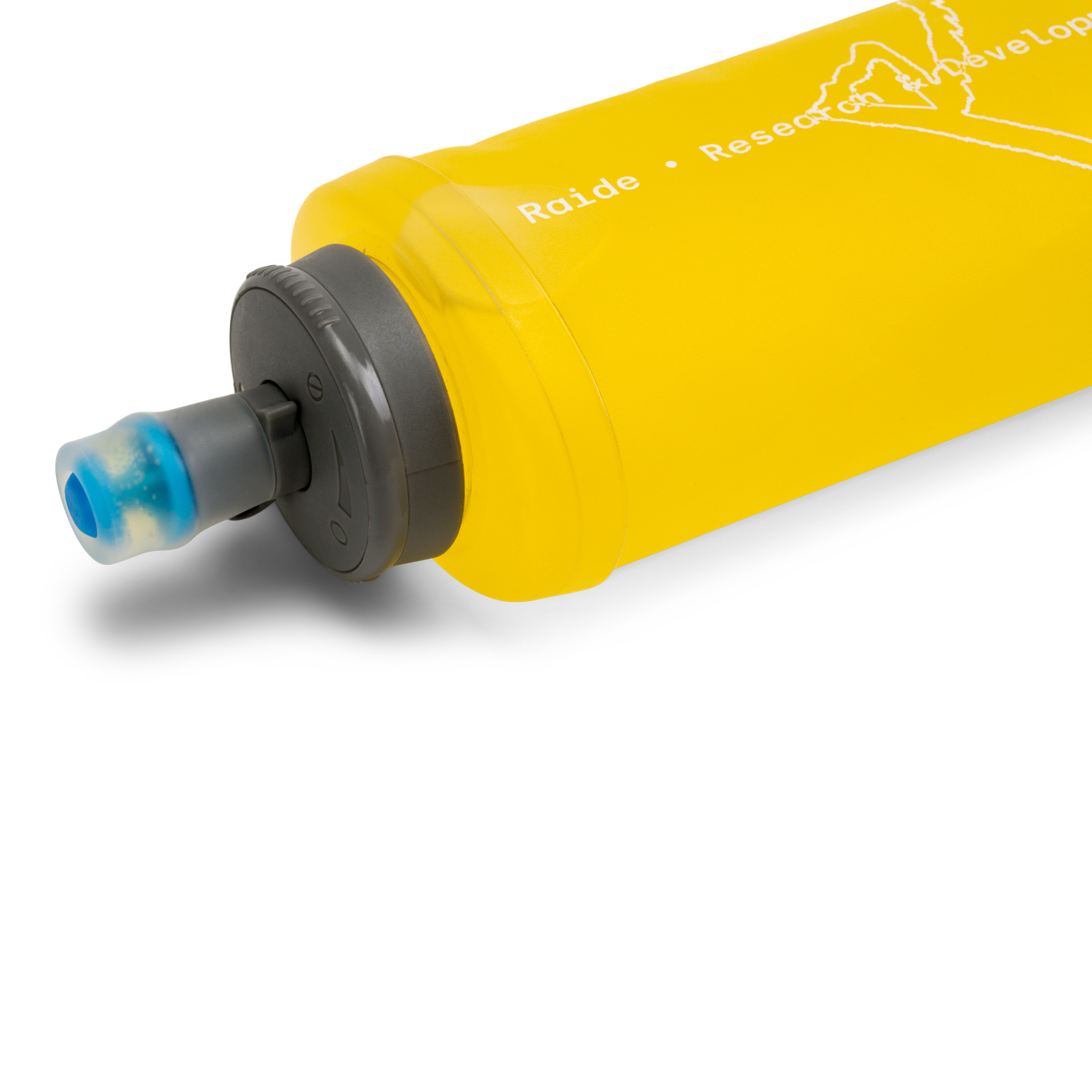 Built to hit the volume sweet spot for many runs at 650mL in volume. The bottle features a locking cap so the nozzle does not leak due to pressure from the belt. Made by Hydrapak.