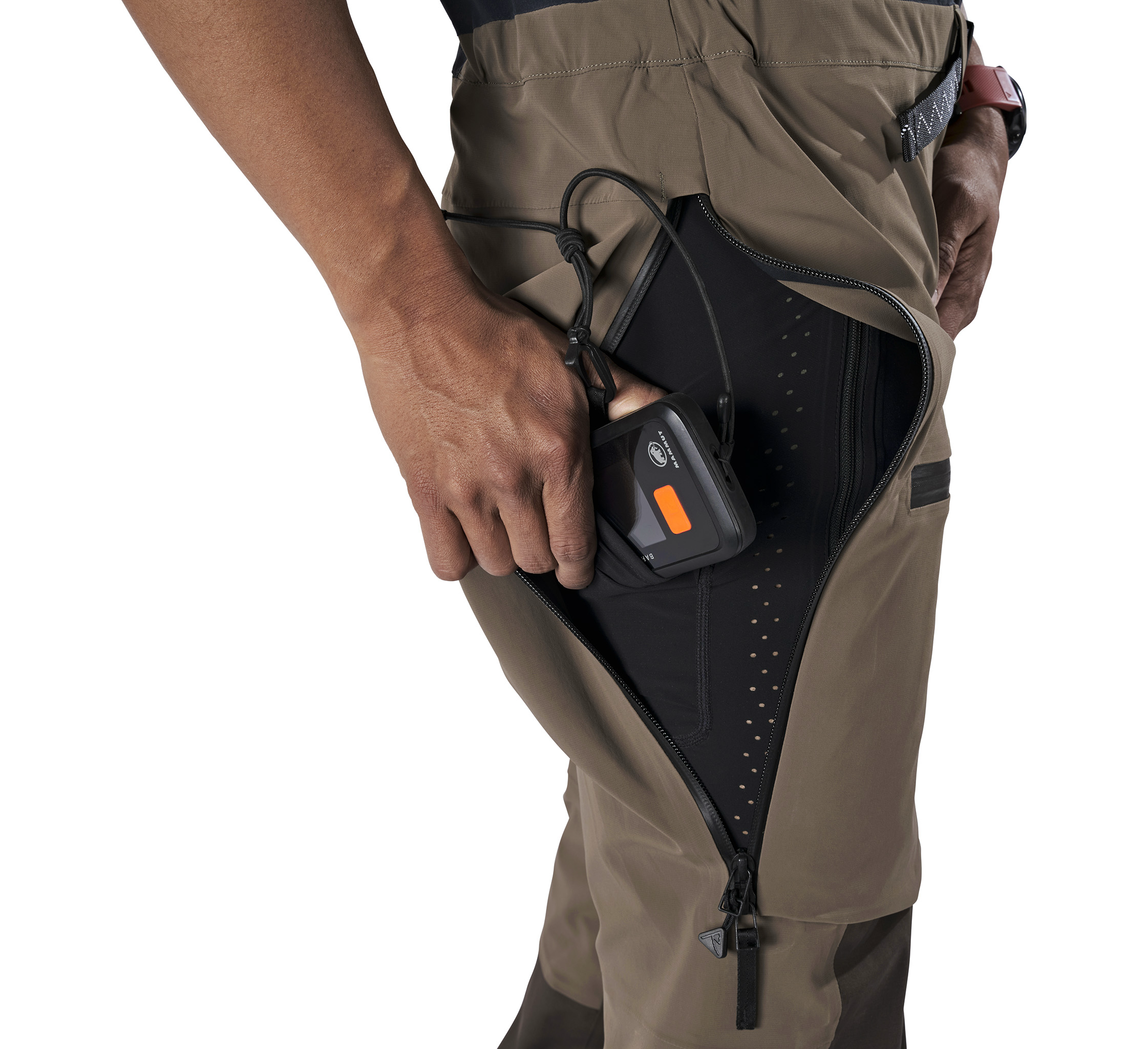 • Beacon sized upper-thigh pocket with beacon clip webbing