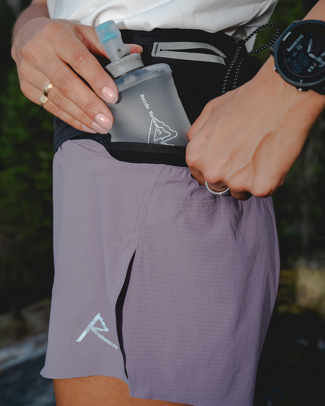 The TrailTech Short comes with a 360mL (soda can) sized locking soft flask, custom engineered by Hydrapak.