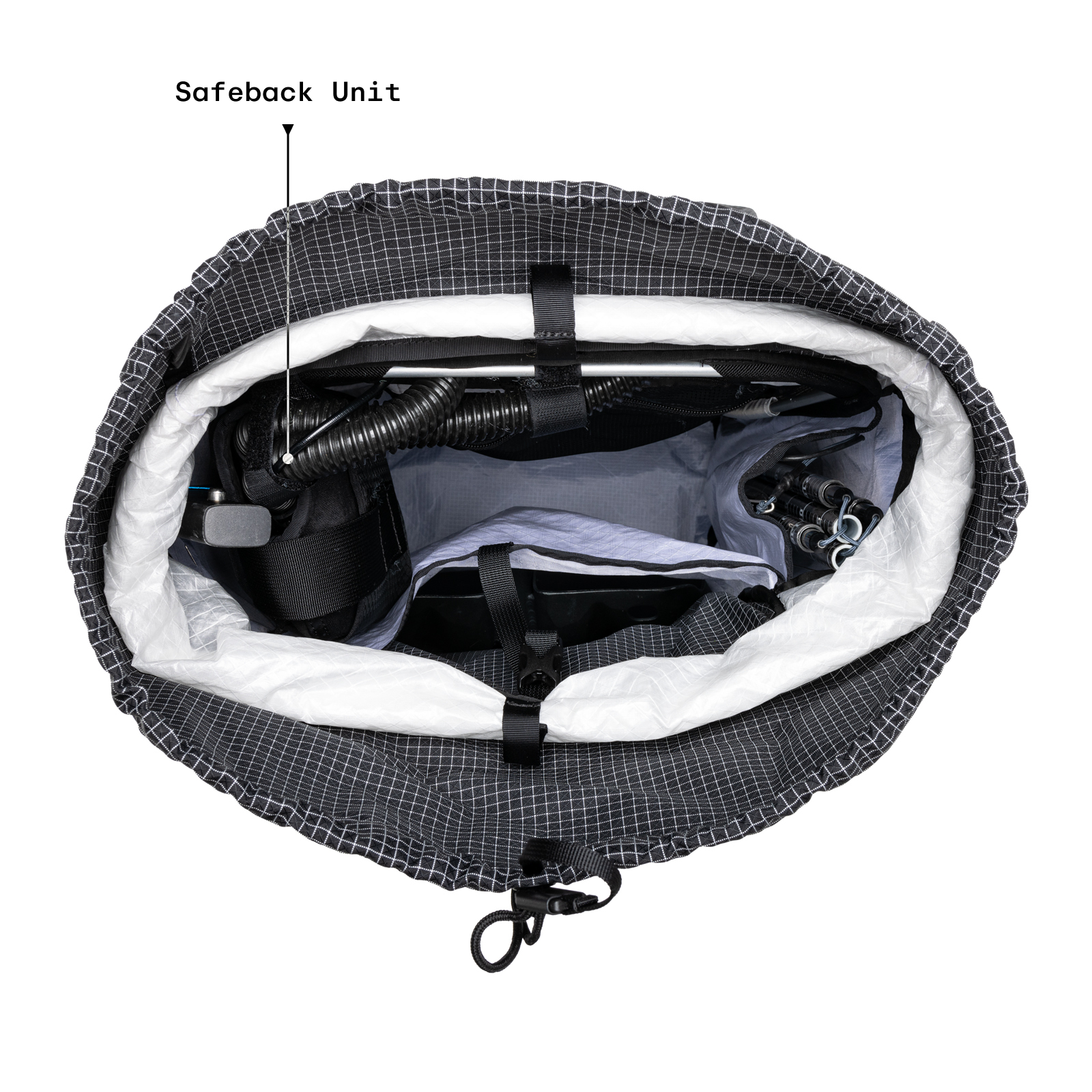 A lighter and smaller alternative to an airbag. The SBX system provides an active air supply for 90 minutes in the event of an avalanche without having to put anything in your mouth. It works by circulating fresh air from the surrounding snowpack flushing out carbon dioxide that has been exhaled, delaying asphyxia. The fresh air is pulled in with an electronic fan unit and circulated around the mouth through tubes installed in each shoulder strap.